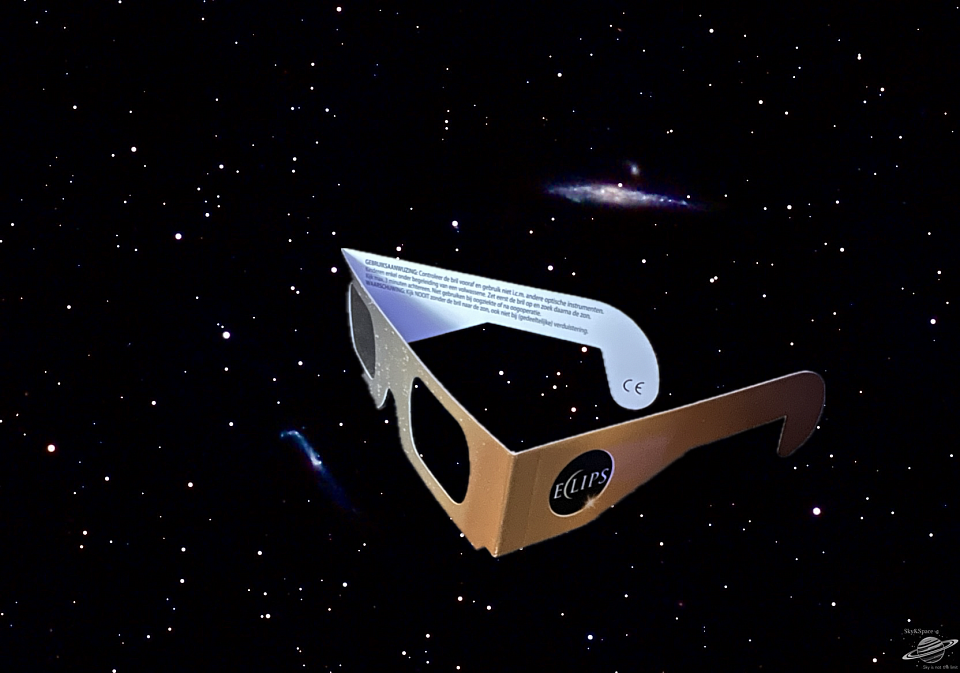 Eclipsbril: Voor het blote oog, gebruik altijd een speciale eclipsbril met ISO-keurmerk 12312-2.
