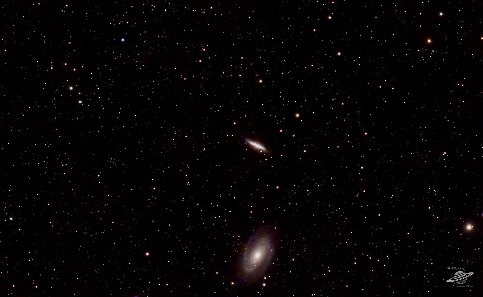 Afgelopen nacht was het super helder deze foto kunnen maken van het Het Bodestelsel ofwel M81 is een spiraalvormig sterrenstelsel in het sterrenbeeld Grote Beer M81 heeft een absolute magnitude van -20,8 en bevindt zich op een afstand van 12 miljoen lichtjaar. Met het nabije stelsel M82 kan het met kleine telescopen waargenomen worden. Onder ideale omstandigheden (met zeer goede ogen, een goede seeing, een stuk boven zeeniveau, geen lichtvervuiling, een maanloze nacht) is het zelfs net mogelijk om het sterrenstelsel M81 met het blote oog al op te sporen waarmee het (afgezien van tijdelijke verschijnselen zoals supernova's) het verst verwijderde object is dat zonder hulpmiddelen kan worden waargenomen.